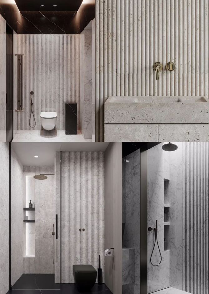 传统的淋浴间地面,就是平滑的瓷砖,并且整体做坡度进行排水,非常普通乏味单调,但是如果使用大理石拉槽,用网友的话来说,就是“200块钱装出了2万块钱的效果”,颜值非常高,尤其是中间的网格状形态,以及四周“回"字型的凹槽,整体非常能出高级感的效果,形式感极强。