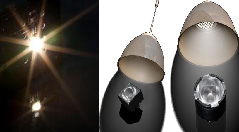 最后就到现在的LED时代了,众所周知,LED光源是个很小的发光体,它本身是无法直接工作的,必须要搭配基板、散热器等,再通过光学的反射器、透镜,才能把光导出来。